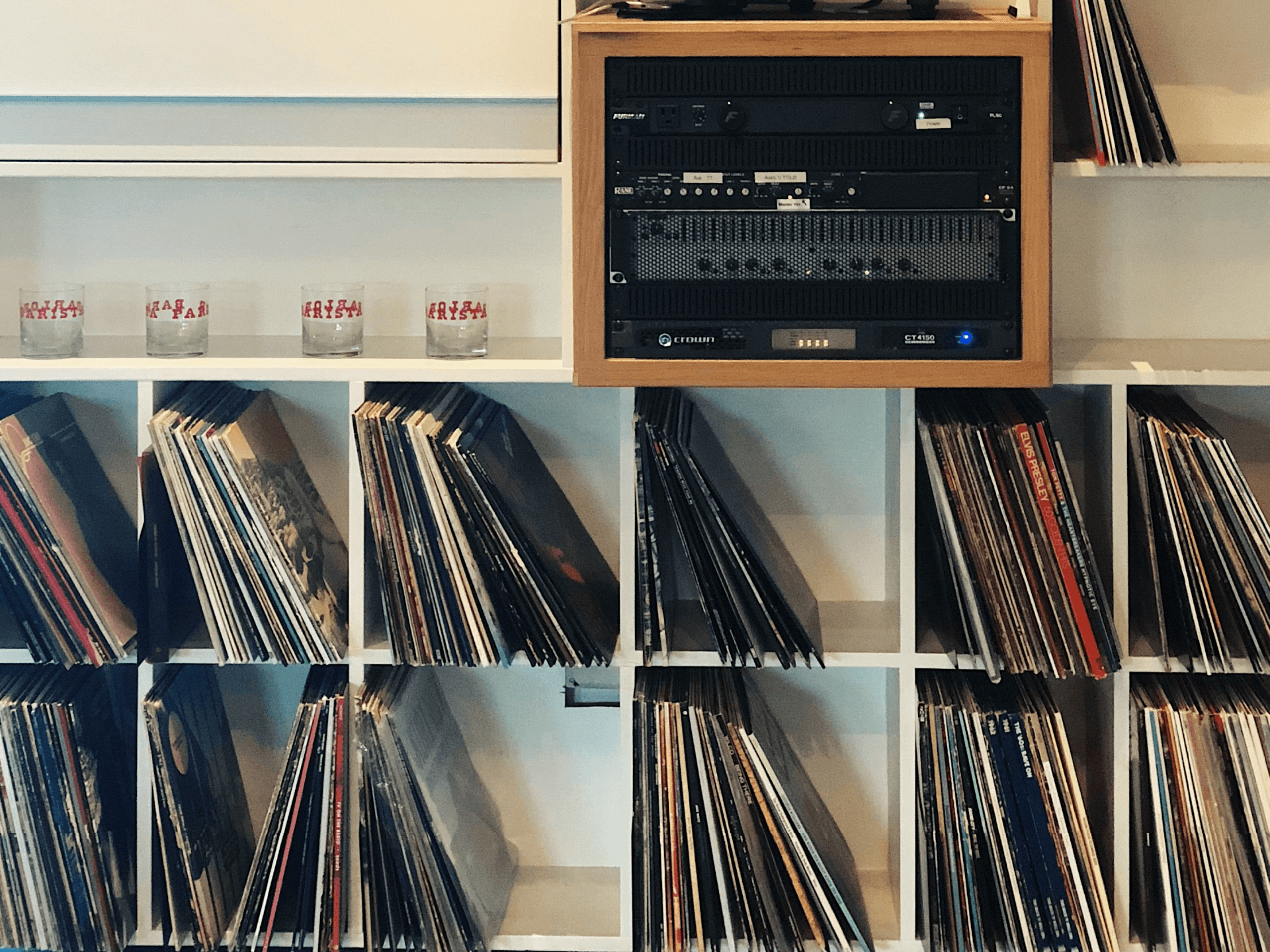 JAZZやクラシックを中心に300枚を超えるレコードコレクションからお客様の雰囲気に合わせてBGMを選んでいます。